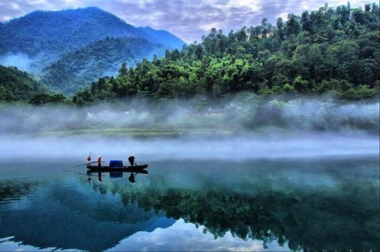 这里是天然的大氧吧,空气格外清新,清新得似乎带有一丝甜味儿。站在湖边,极目远眺,满是翠绿的柏树、浓绿的彬树和浅绿的藜蕨,浓淡相间地倒映在湖中,宛若千万支彩笔在书写山中的幽静和娟美,在揭示扑朔迷离的神秘。眼前的一切,是这么宁静,这么安详,仿佛听到了东江湖的心跳,感觉自己仿佛变成了一尾小鱼,与东江湖融为一体。繁喧的都市已离得很远很远,自由的心将被这片宁静净化得一尘不染。在领略东江山水景色之外,旅游者还可参与一些冒险、探幽、逍遥的旅游项目,有“中国生态旅游第一漂”的东江漂流、水上跳伞、水上飞机、水上摩托、湖畔垂钓、温泉浴等等,令你有惊无险、余兴未了。